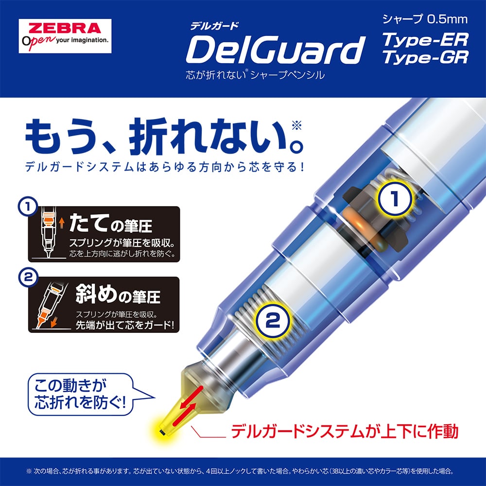 デルガード機能を搭載し、たての筆圧・ななめの筆圧で「折れない」シャープペンです。シックなブラックのデザインは、どんなシーンにもマッチし、スタイリッシュな印象を与えます。