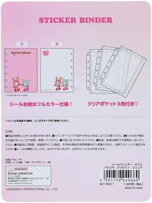 サンスター文具 ナルミヤ メゾピアノ シールバインダー 台紙/10枚 クリアポケット/3枚 6穴
